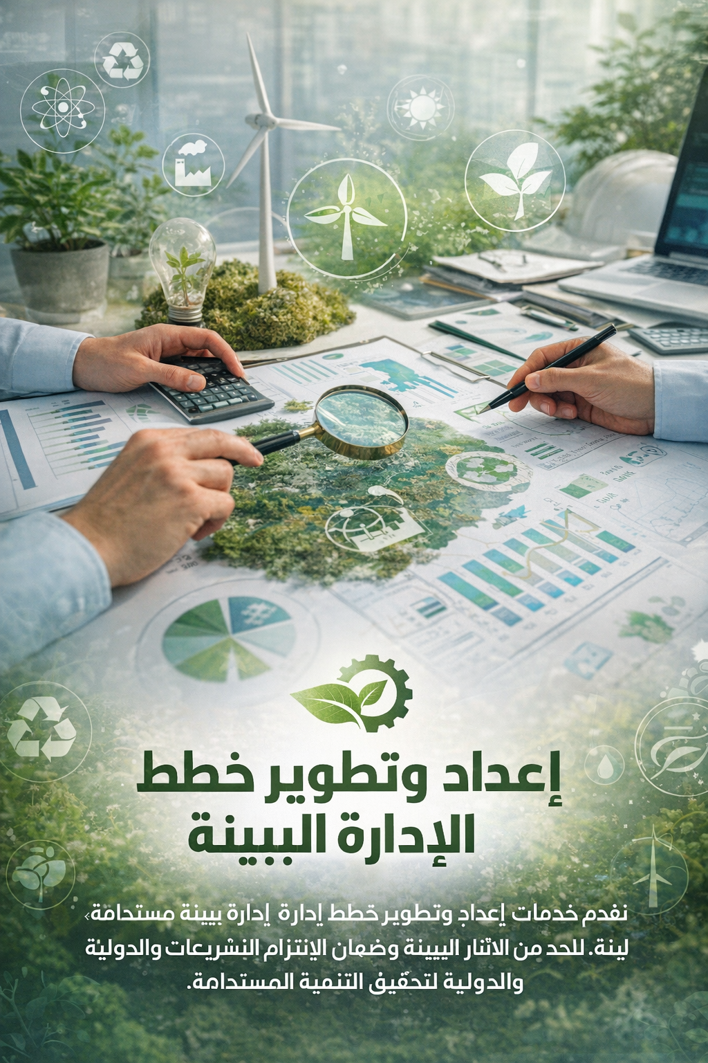 تعمل EnviroPath على تصميم خطط إدارة بيئية متكاملة تتضمن إجراءات تنفيذية واضحة. وتركّز هذه الخطط على تنظيم العمليات، ومراقبة الأداء البيئي، وإدارة المخلفات، وحماية الموارد الطبيعية، مع ضمان الالتزام المستمر باللوائح والمعايير البيئية المعتمدة، بما يسهم في تحسين كفاءة التشغيل وتقليل المخاطر البيئية.