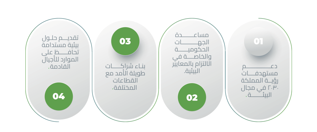 تقديم دراسات وتحليلات بيئية متكاملة لدعم اتخاذ القرار وضمان الالتزام بالاشتراطات البيئية.